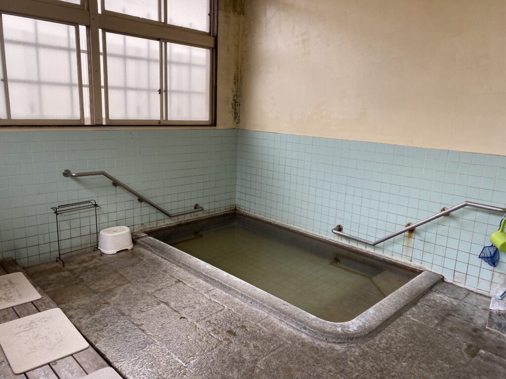 脱衣場の階段を下りると浴槽があるので、初めて別府の温泉に入った時は驚きました。